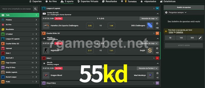 A aposta 55kd oferece aos jogadores a experiência mais conveniente de apostas em eSports!
